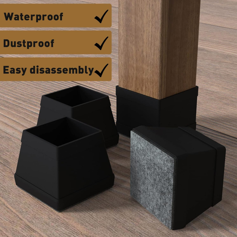 These 16 square chair leg covers are designed specifically for solid wood floors. Made with a silicone and felt composite structure, they are non-slip and freely movable, with a sophisticated black appearance. Their unique advantage is their foldability: the silicone material has excellent flexibility, allowing you to fold or roll the covers like socks for easy storage and transport. When you need to change chairs or move, simply remove the covers, fold them, and store them in a drawer with minimal space. Furthermore, their foldable nature means they can accommodate slightly deformed square legs; even if the chair leg dimensions are slightly off, the silicone will fold and fit snugly around the corners. With these covers, your solid wood floors enjoy secure protection, while the covers themselves are easy to clean and store.